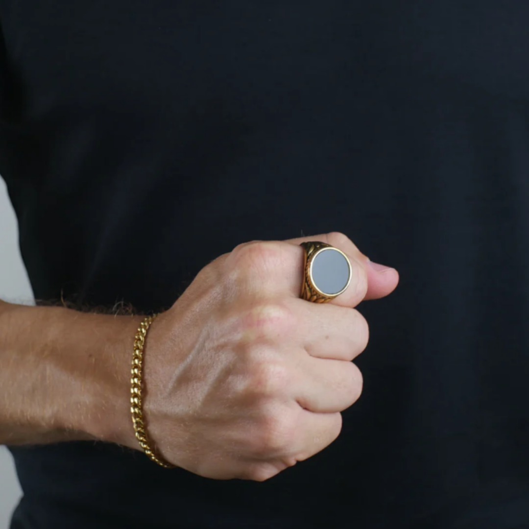 Anillo Obsidiana Dorado