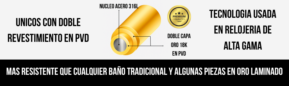 Revestimiento ionizado en oro 18k con tecnología PVD.